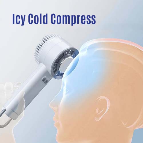 For even more relief, apply the built-in 35mm ice pad to your skin… it feels like an icy 5°C and doubles as a compress for aches, swelling, or headaches.