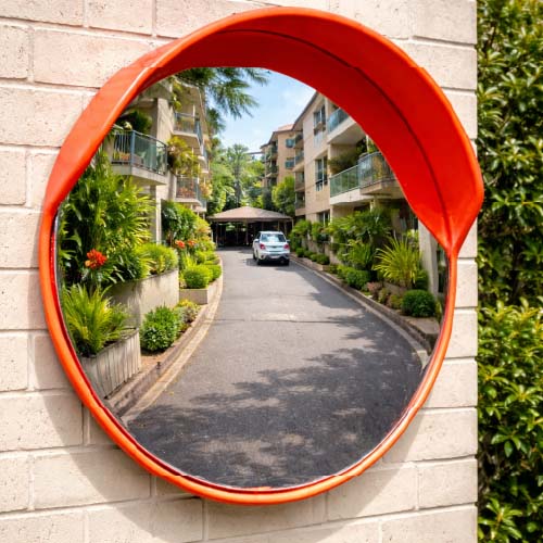 Perfect for driveways hidden by trees, fences or structures, the convex mirror gives you a clear 220° view so you can easily spot pedestrians, bicycles, scooters and oncoming vehicles.