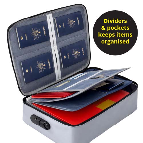 Not everyone can install a heavy steel safe into brick or concrete. Fire & Water Resistant Case shields shield passports, birth certificates, cash, travel documents, photographs and other irreplaceable keepsakes.