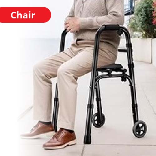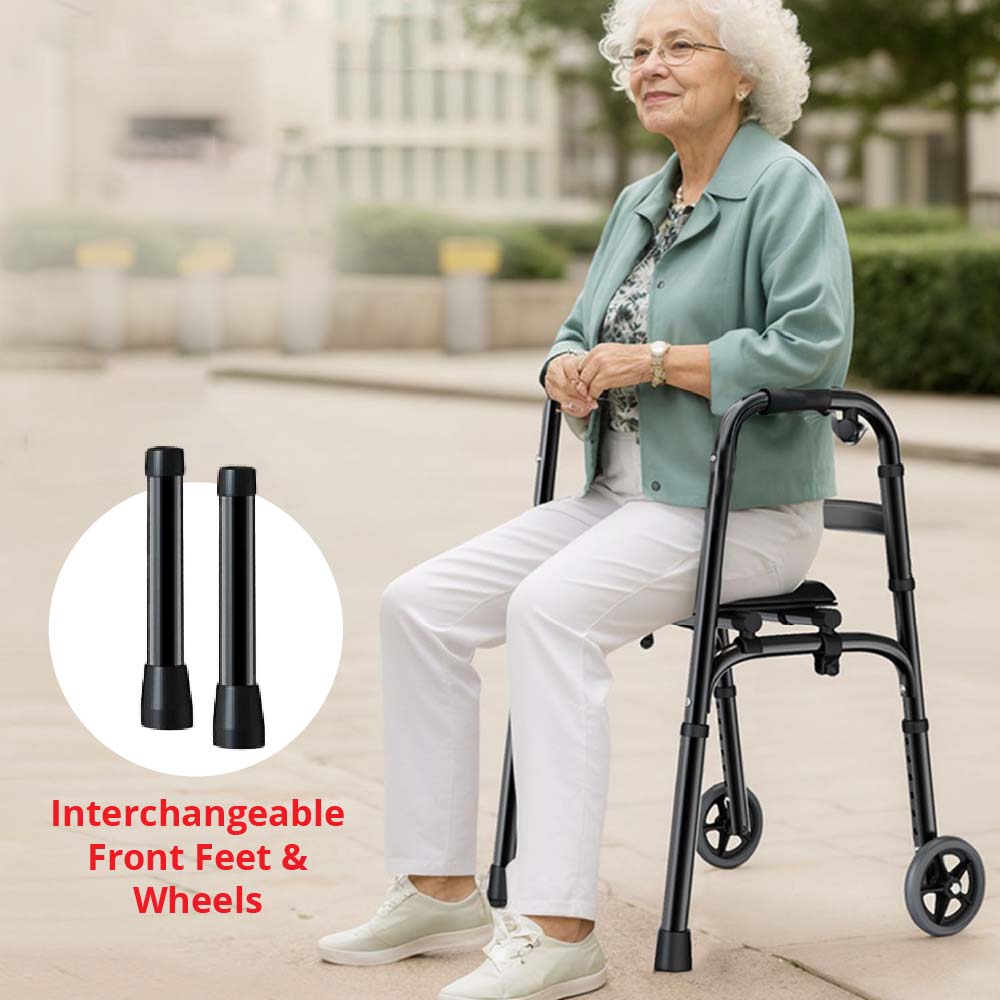 Foldable Walking Frame supports your every step, then instantly becomes a comfy seat when you need a rest.