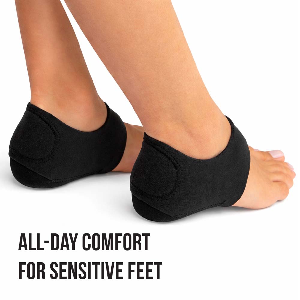 These soft gel-padded cushions work three ways to aid foot problems. The soft neoprene cushions under your heels, gentle compression helps aid plantar fasciitis, while the soft gel pads at the back protect cracked, dry skin, and help you avoid blisters.