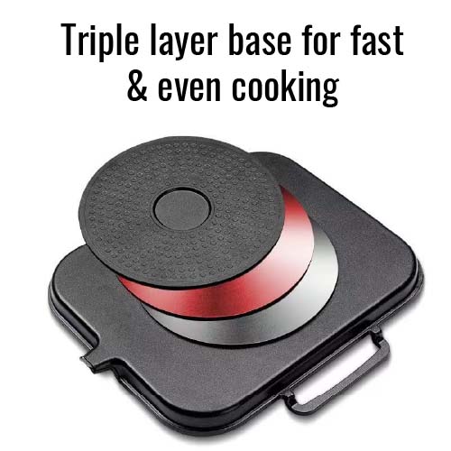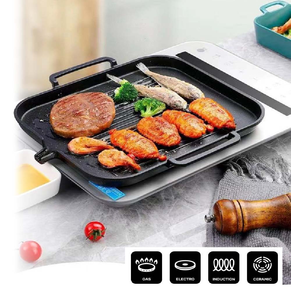 As food releases oil, it flows to the spout, eliminating excess fats for cleaner, lighter cooking. Perfect for grilling steak, chicken, fish, satay, sausages, or vegetables, it’s compatible with gas, glass, ceramic, electric and induction cooktops.