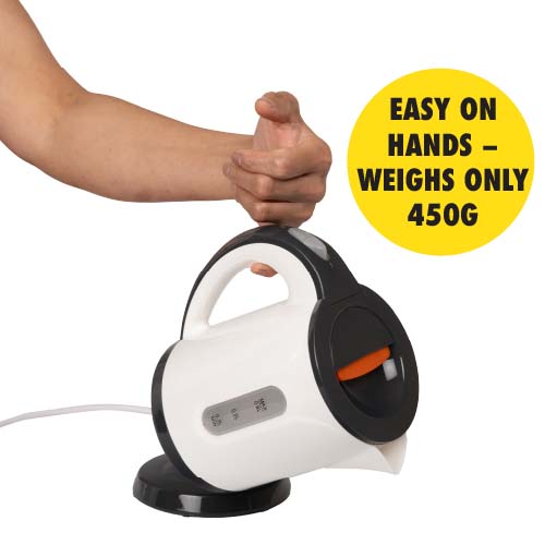 Designed specifically for seniors and those with arthritis or weak grip, Lightweight Kettle weighs just 450g, boasts a large jug-style handle, and an easy-open lid for safe filling.