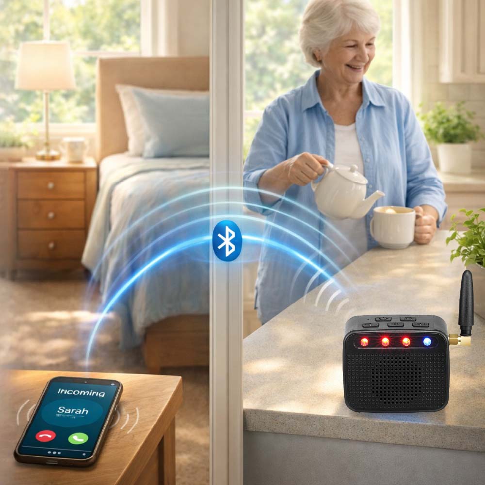 It stays in touch with your mobile via Bluetooth up to 50m away, has 5 ringtones, 5 volume levels, 3 LED brightness settings – and doubles as a Bluetooth speaker for music, radio and podcasts.