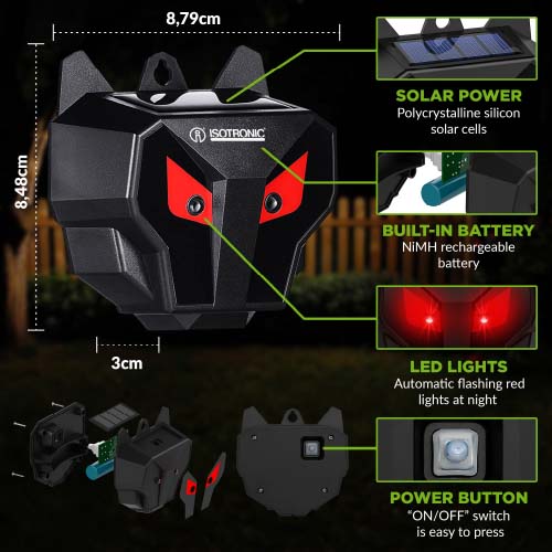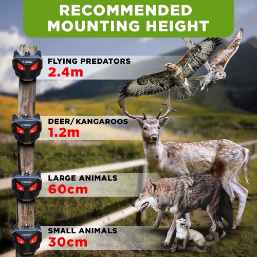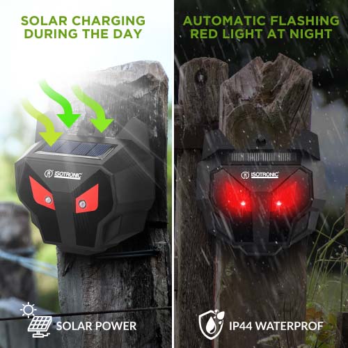 The twin red LEDs flash through the night, offering 360° coverage to protect yards, veggie patches and small farms.